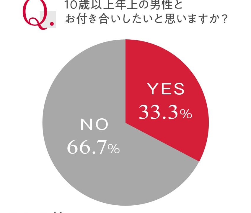 • 10歳以上年上の男性とお付き合いしたいと思う:33.3%
