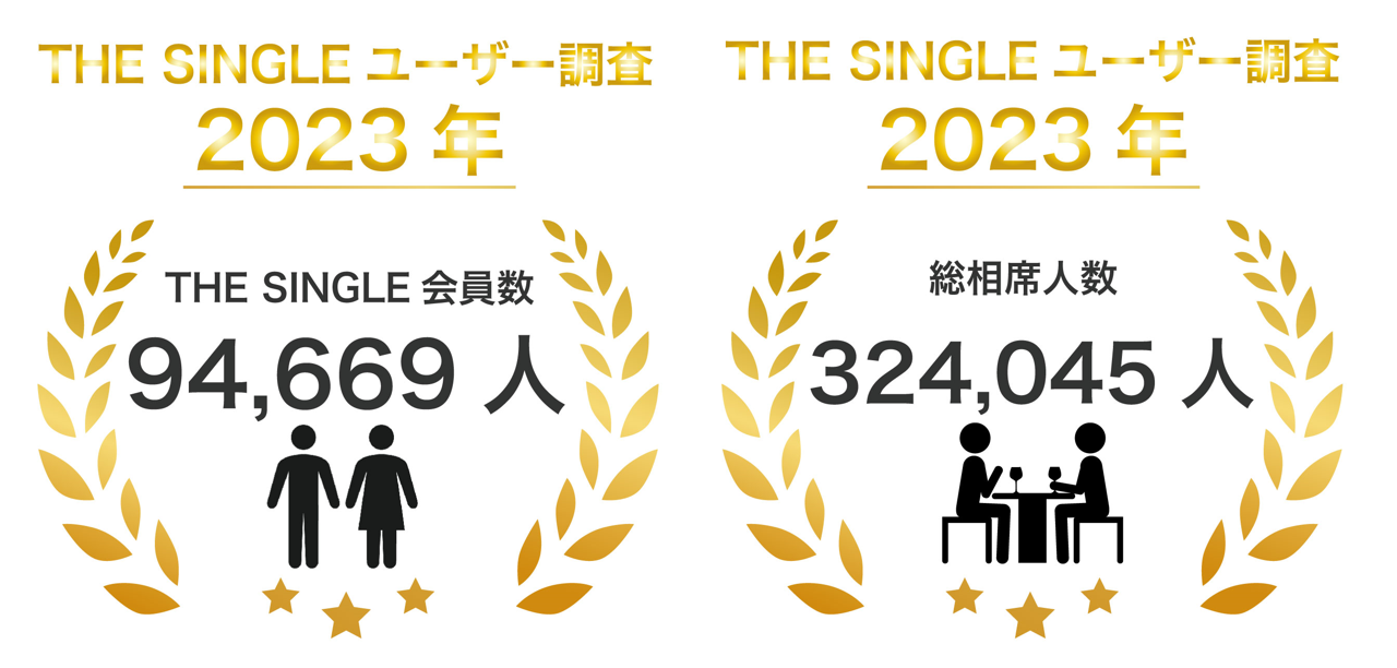 2023年度1月のTHE SINGLEは、THE SINGLE会員数94,669人、総相席人数324,045人を突破いたしました。(※総相席人数:2021年度〜2023年1月までの合計数)