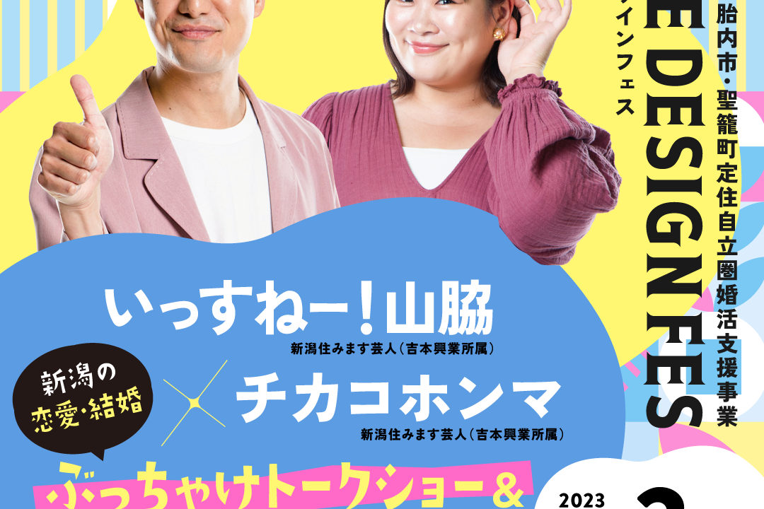 \幸せの7号線事業/ 新発田市・胎内市・聖籠町定住自立圏婚活支援事業 いっすねー!山脇×チカコホンマ 新潟の恋愛・結婚ぶっちゃけトークショー&スイーツ&ガラポン抽選会!ライフデザインフェスを開催のサブ画像1